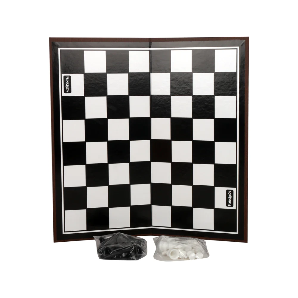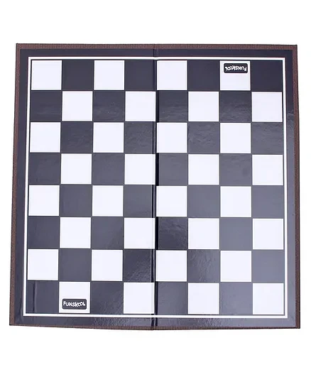 Chessboard: The game is played on an 8x8 square board with alternating dark and light squares, creating a checkered pattern.